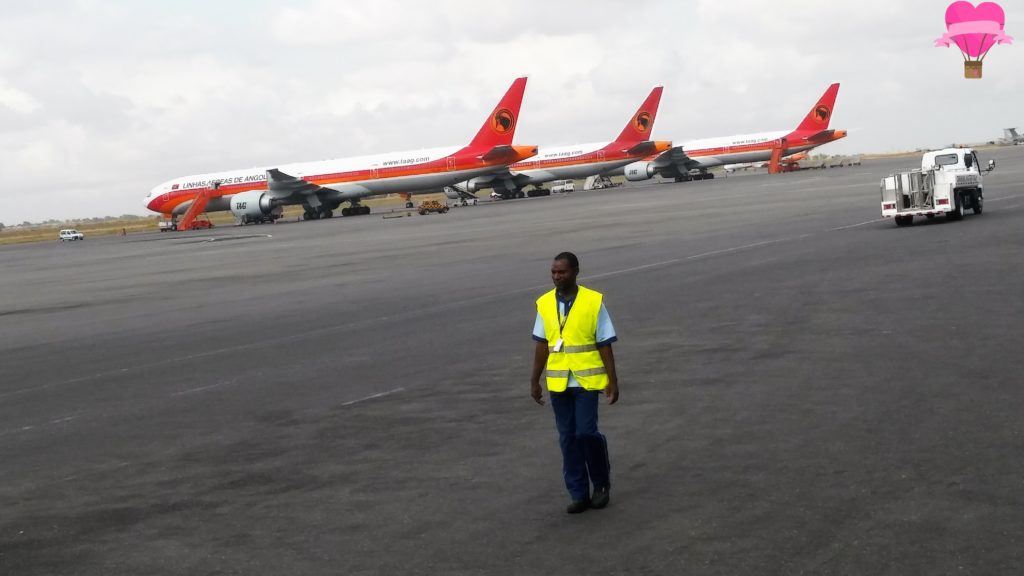 O Meu voo será também com a TAAG e escala em Luanda, bom saber desses detalhes para já ir preparada…mas nem casa de cambio, nem ar condicionado!? Que coisa chata! Não gostei, espero que comigo seja um pouco melhor.