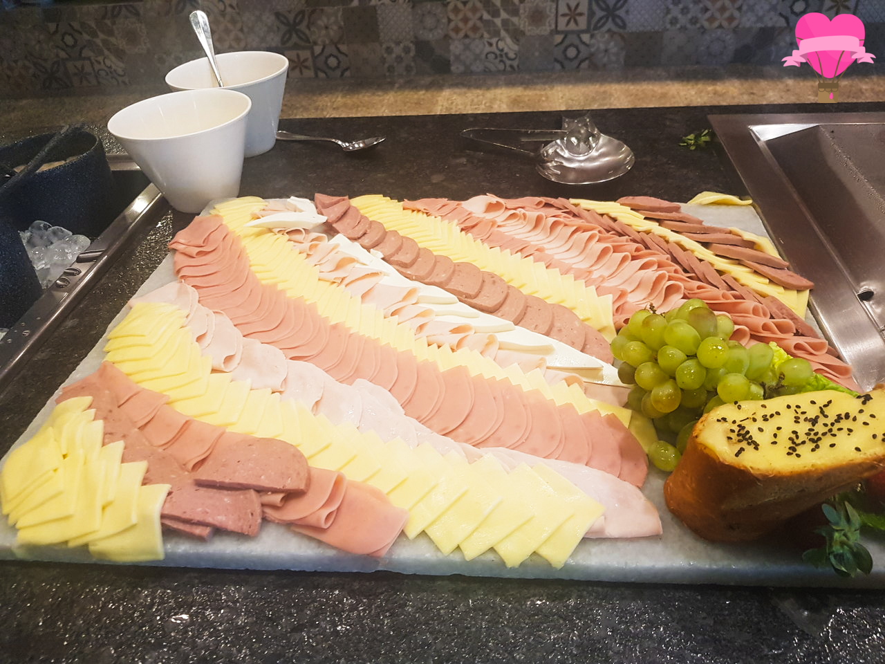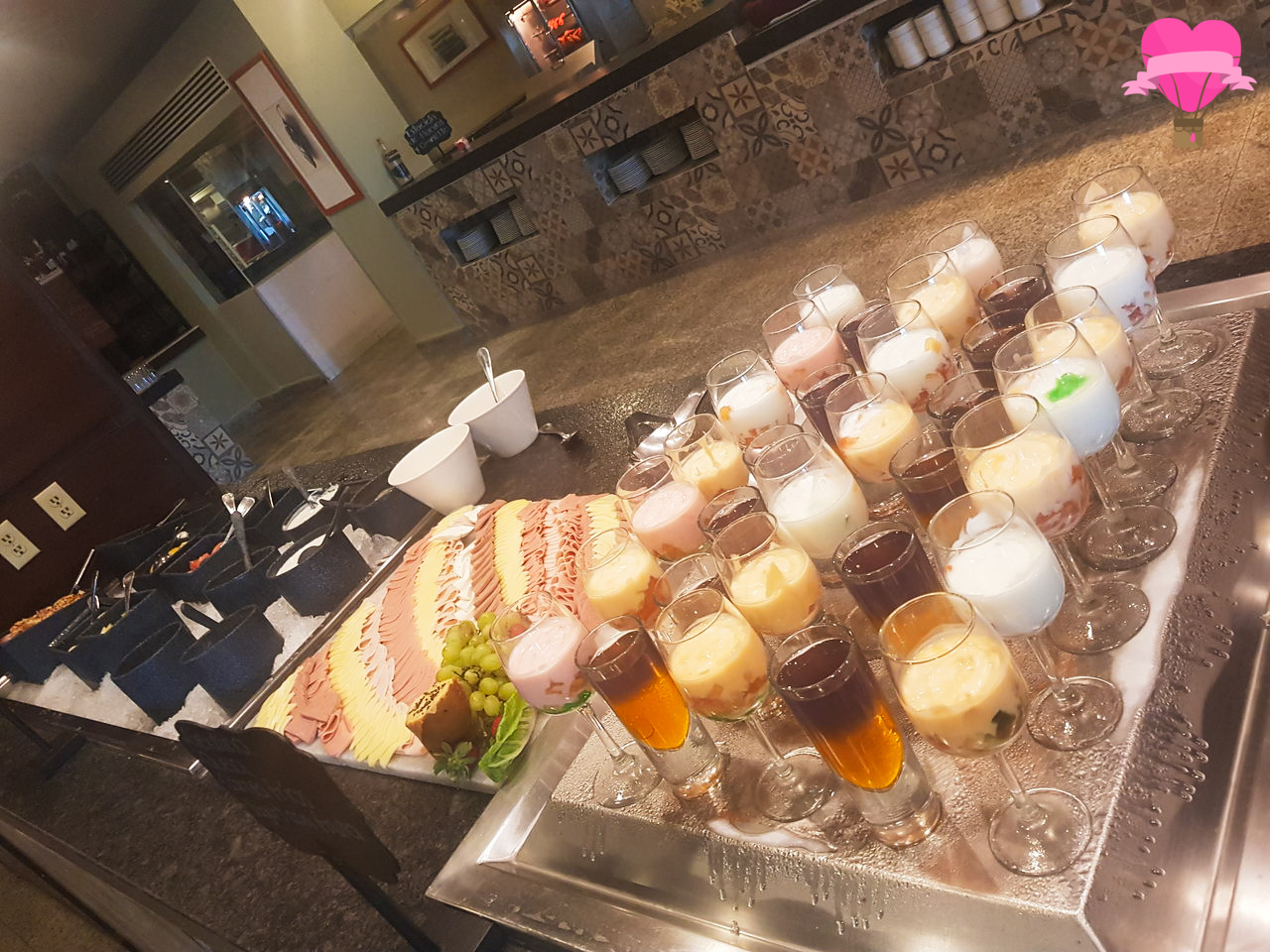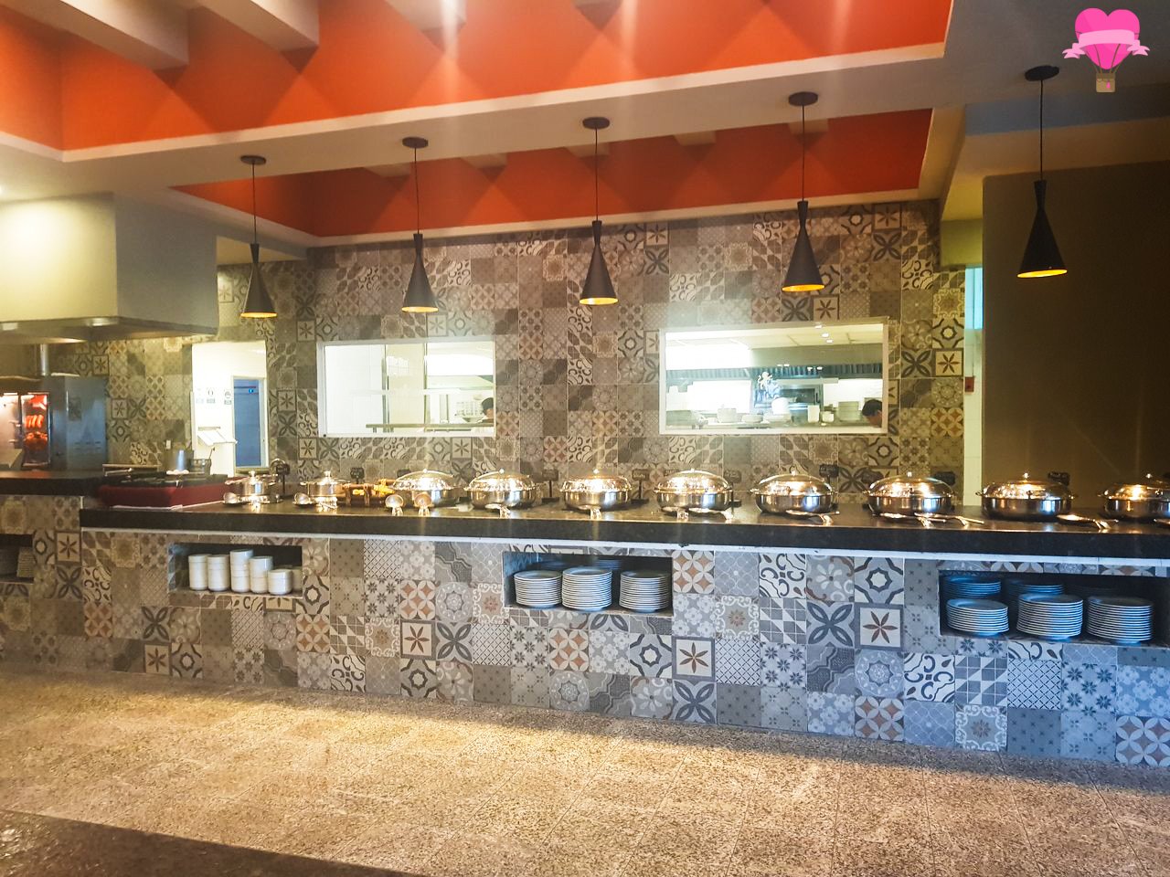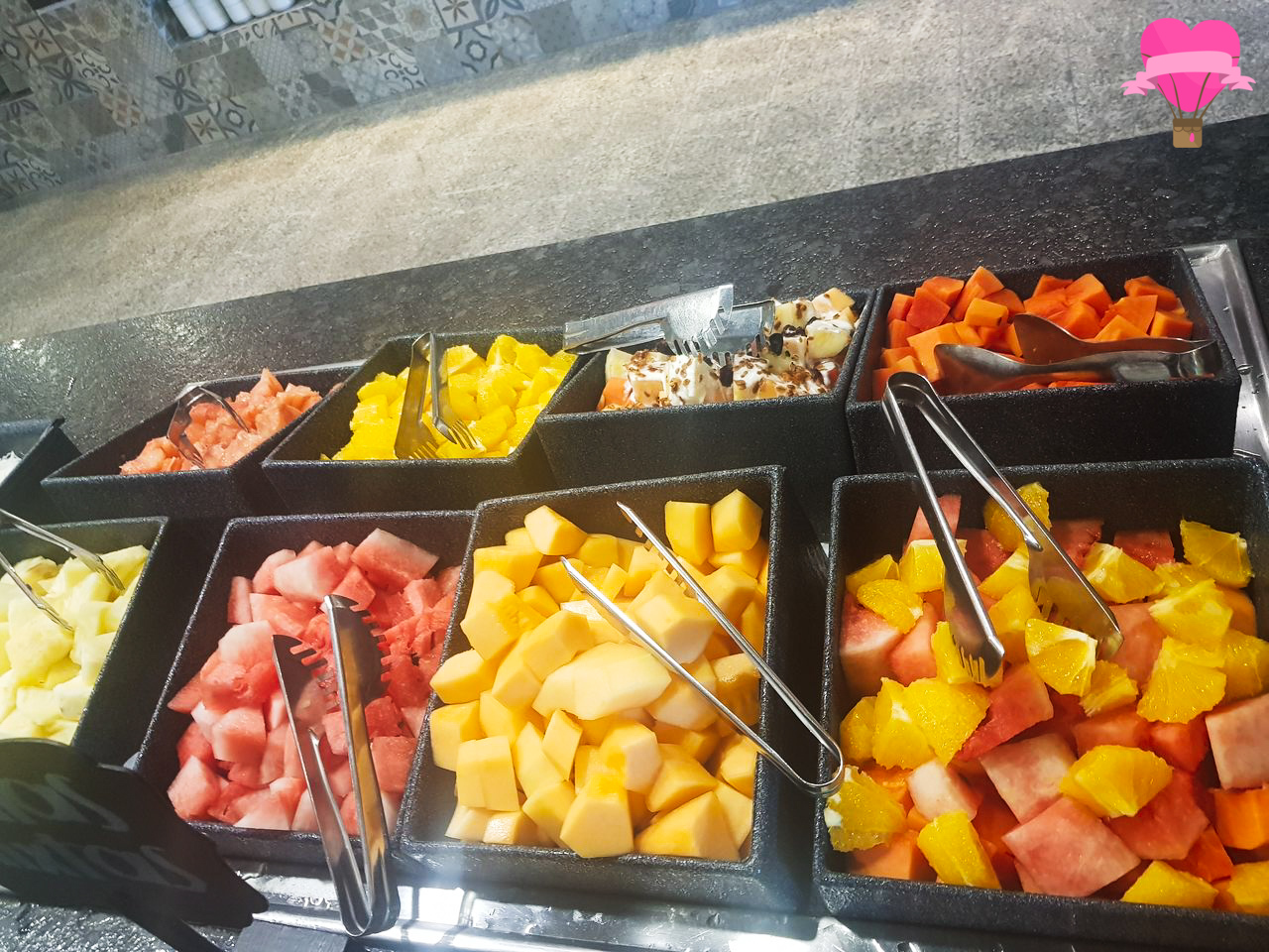 O café da manhã parece um almoço de tanta variedade de comida que oferece. Tem os alimentos mais tradicionais, como frutas, cerais, bolos, pães, queijos e frios. Mas também tem alguns pratos quentes típicos da culinária mexicana.