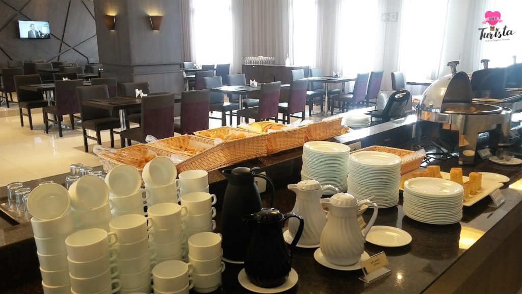 O café da manhã está incluso nas diárias e é servido no restaurante localizado no 2º piso, horário das 6h às 10h. Se o hóspede quiser, pagando uma taxa adicional de R$ 38,00 poderá ser servido no quarto. A variedade e fartura me surpreenderam, tudo fresquinho, gostoso e feito com capricho.