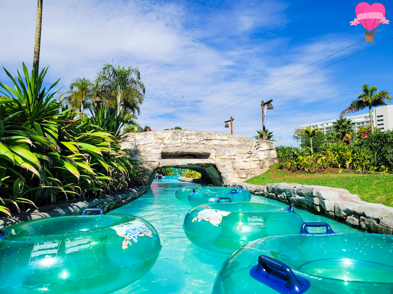 Iniciamos o dia explorando as atrações mais tranquilas do Blue Park, ideais para nos adaptarmos e desfrutar o começo da manhã com tranquilidade. Um dos primeiros lugares que exploramos foi o rio lento, e que prazer foi deslizar por ele sem pressa! A suave correnteza nos conduzia pelo caminho sinuoso, entre paisagens bem cuidadas, palmeiras, pedras ornamentais e o tranquilizante ruído da água correndo.
