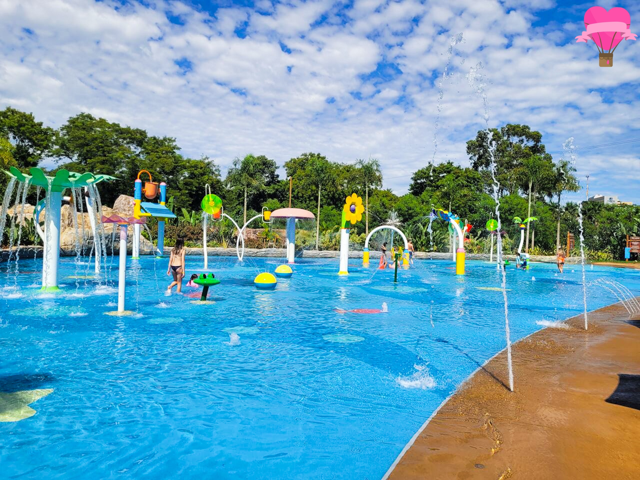 Há jatinhos suaves de água, mini escorregadores e fontes que borbulham de maneira delicada tudo em escala reduzida, respeitando os limites e o conforto da faixa etária. Os pais ou responsáveis interagem com os bebês ali dentro, brincando juntos e criando momentos afetivos únicos.