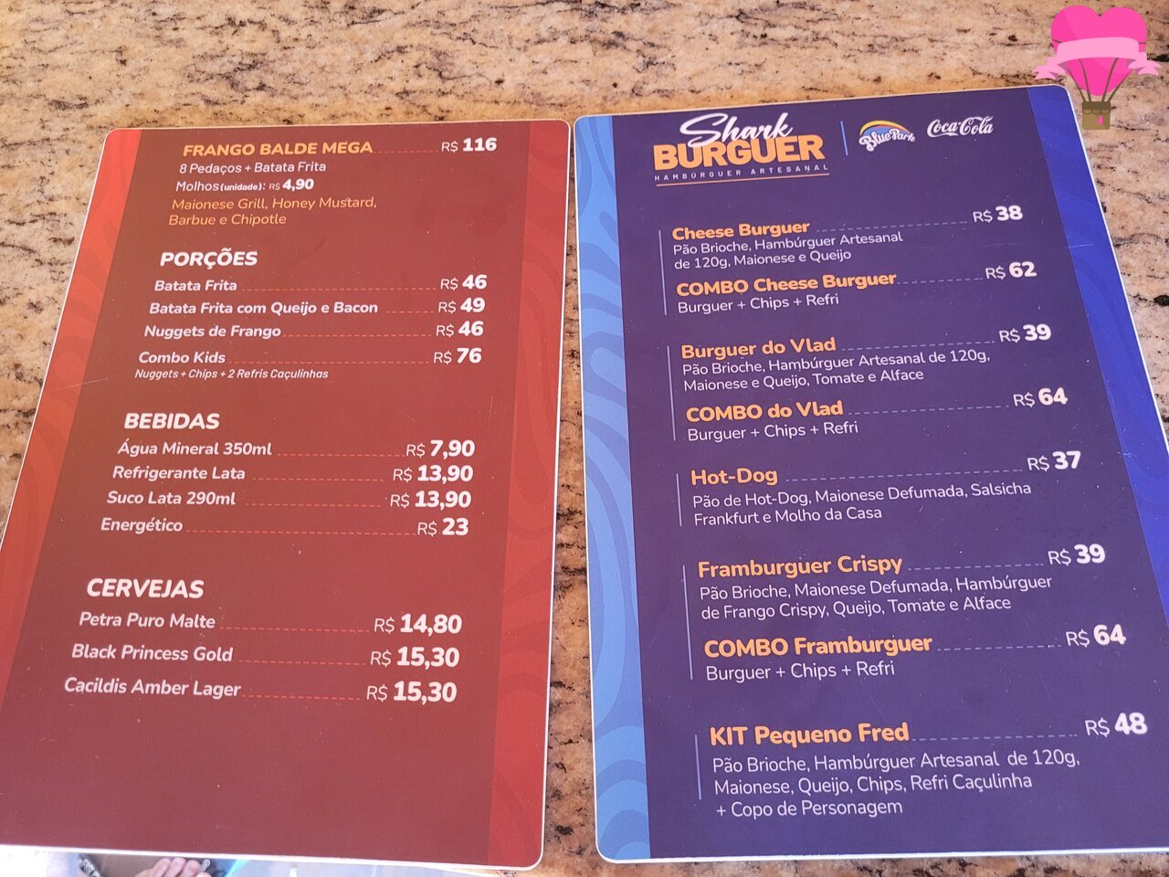 - Cardápio com os preços praticados em fevereiro de 2025 por um dos estabelecimentos