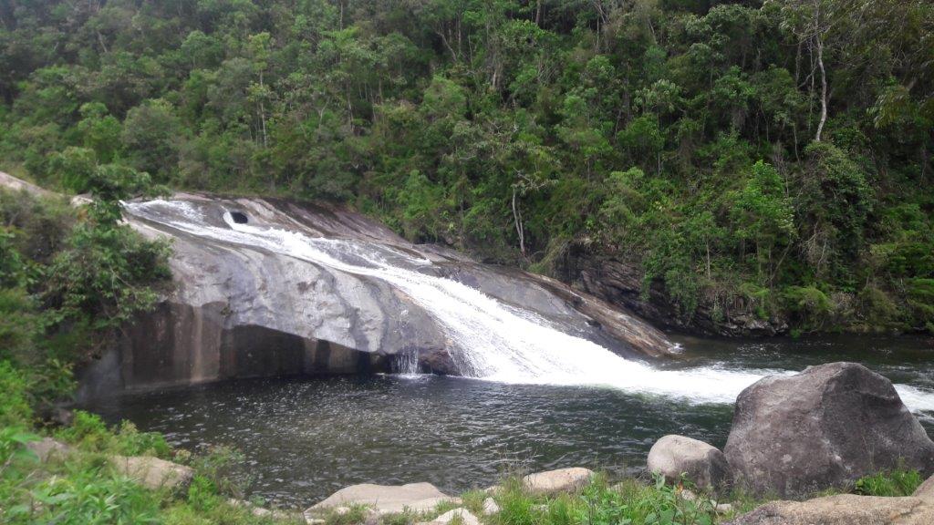 → Cachoeira do Escorrega: Cachoeira mais visitada da região, o nome se dá por ter um tobogã formado pela própria pedra do rio com aproximadamente 20 m que termina em uma piscina natural. Me pareceu bem perigoso para escorregar, por isso não tive coragem, optei por ficar só admirando a paisagem. Próximo da cachoeira tem um estacionamento que cobram R$ 10,00 (livre), para economizar deixei o carro mais longe e terminei de chegar a pé.