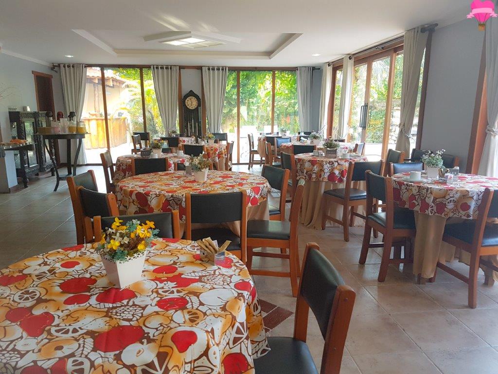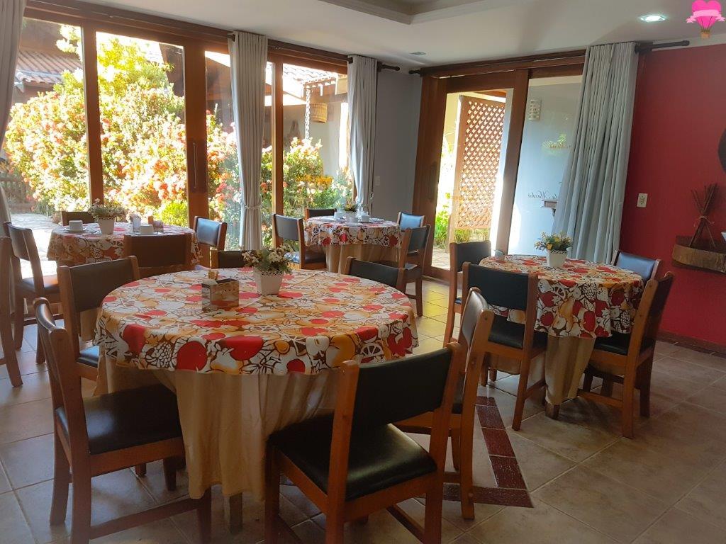 O restaurante muito aconchegante e acolhedor, serve o café com pães, bolos, biscoitos, sucos, frutas e outras variedades, de segunda à sábado, das 06h30min às 09h, aos domingos e feriados das 06h30min às 10h. Caso necessite sair antes do horário do café, pode solicitar um kit lanche, gratuitamente. A pousada não serve almoço e jantar, mas fornecem contatos dos restaurantes que fazem entrega.