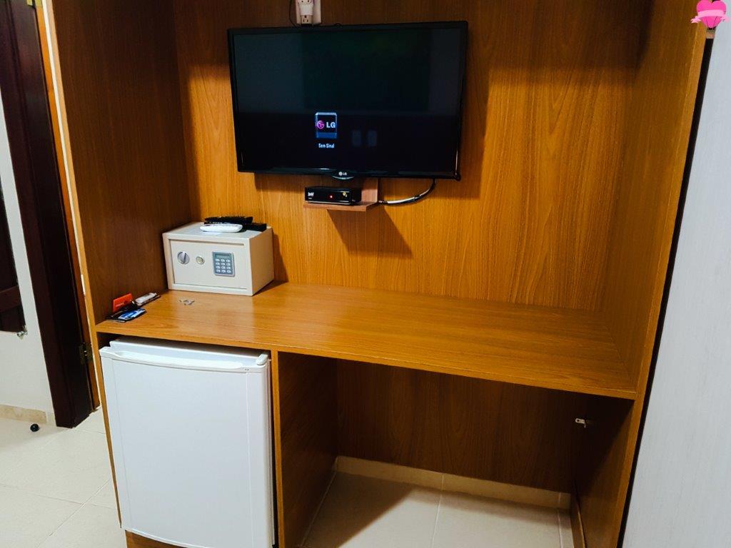 São 21 suítes, luxo ou luxo especial. Ficamos na luxo, possui frigobar, ar-condicionado, ventilador de teto, telefone, TV, cofre, banheiro com secador de cabelo e amenidades de banho, a suíte é pequena mas funcional. Os quartos são limpos todos os dias.