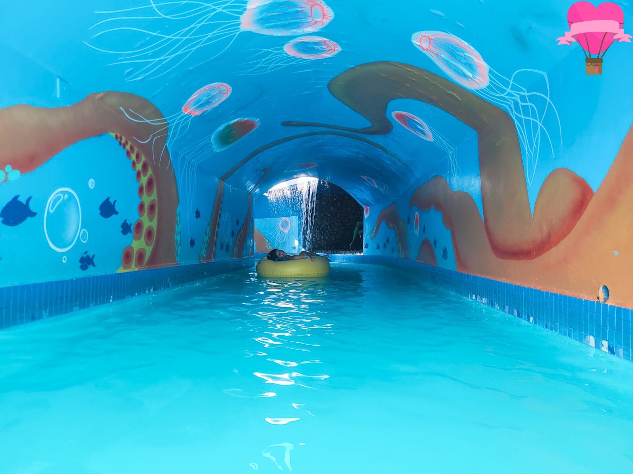 Após algumas descidas emocionantes nos tobogãs, optamos por explorar outros espaços do parque em busca de momentos mais tranquilos, como o Rio Lento, uma das minhas atrações preferidas do parque. Peguei uma boia, me acomodei de maneira confortável e apenas deixei a correnteza me levar. O balanço suave proporcionou um relaxamento delicioso que recarregou as minhas baterias.