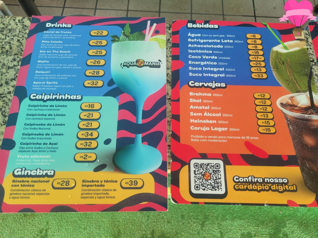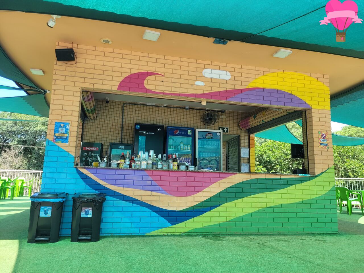 Há também um quiosque exclusivo para bebidas, onde são servidos drinks, caipirinhas e outras opções refrescantes.