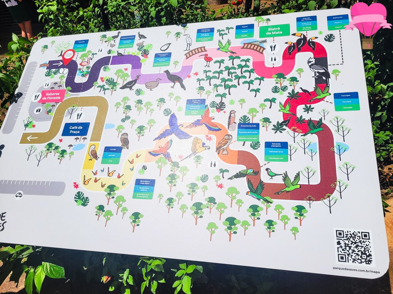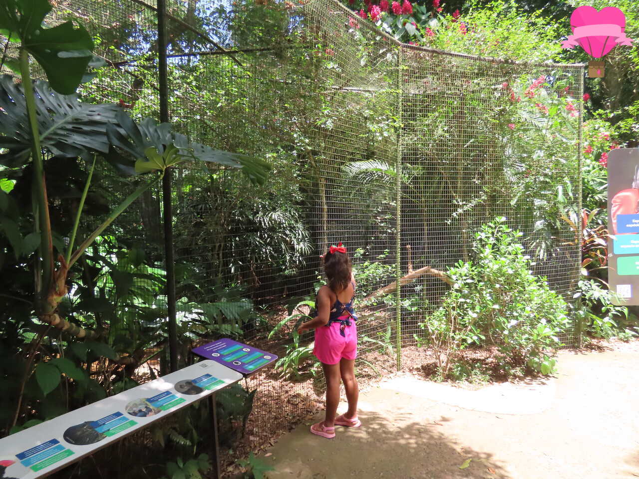 → O passeio é autoguiado e feito por uma trilha bem sinalizada, com aproximadamente 1.500 metros de extensão. A visita pode levar de 2 a 3 horas, a depender do ritmo do visitante e do tempo que desejar dedicar a cada viveiro. É uma experiência livre, que permite explorar com calma cada ambiente e aproveitar ao máximo o contato com as aves e a natureza ao redor.