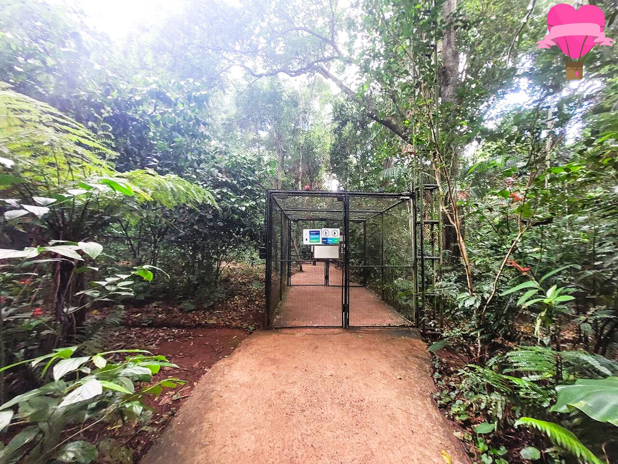 As passarelas conduzem os visitantes conectando os diferentes viveiros e áreas de observação. Caminhar por essas passarelas é como percorrer uma trilha suspensa em meio à mata, com o som dos pássaros ao redor e a vista privilegiada das copas das árvores. Todo o caminho é acessível para crianças e idosos.
