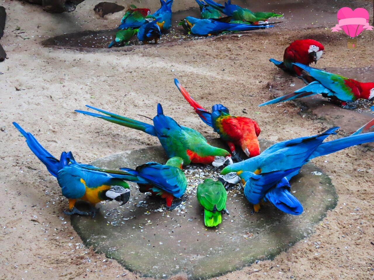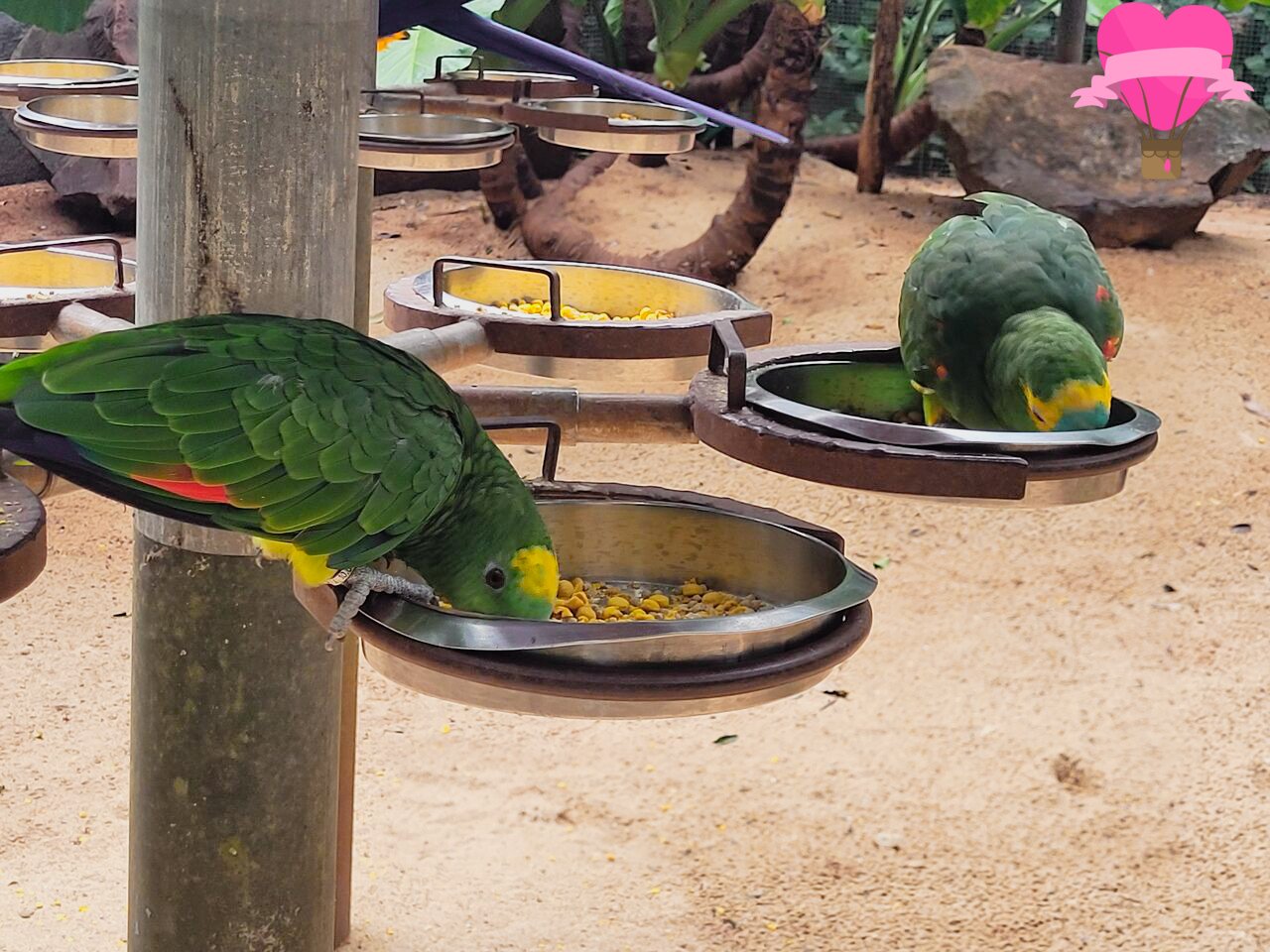 No viveiro, é possível acompanhar a alimentação das araras e dos papagaios em três horários: 10h30, 14h e 15h30. Esse é um dos momentos mais aguardados pelos visitantes e também o melhor horário para observá-las, já que elas se reúnem em grande número e proporcionam um verdadeiro espetáculo. Com movimentos graciosos e interações animadas, parecem até ensaiar uma apresentação, encantando adultos e crianças.