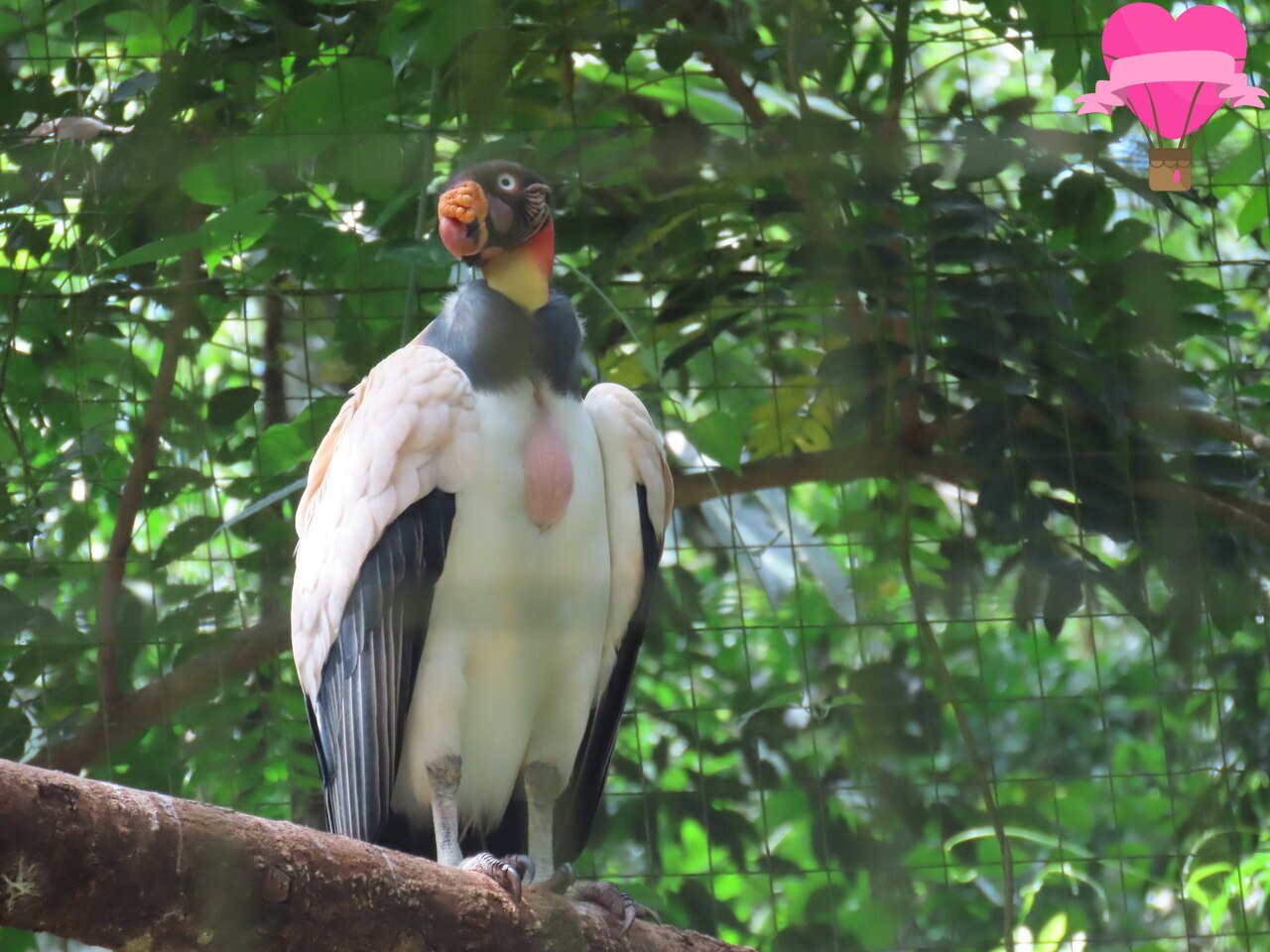 Uma das aves mais imponentes do parque é o Urubu-rei, facilmente reconhecido pelo porte robusto. Apesar de seu nome e aparência marcante, ele tem um papel essencial no equilíbrio do ecossistema, atuando como um eficiente limpador da natureza ao se alimentar de animais em decomposição.