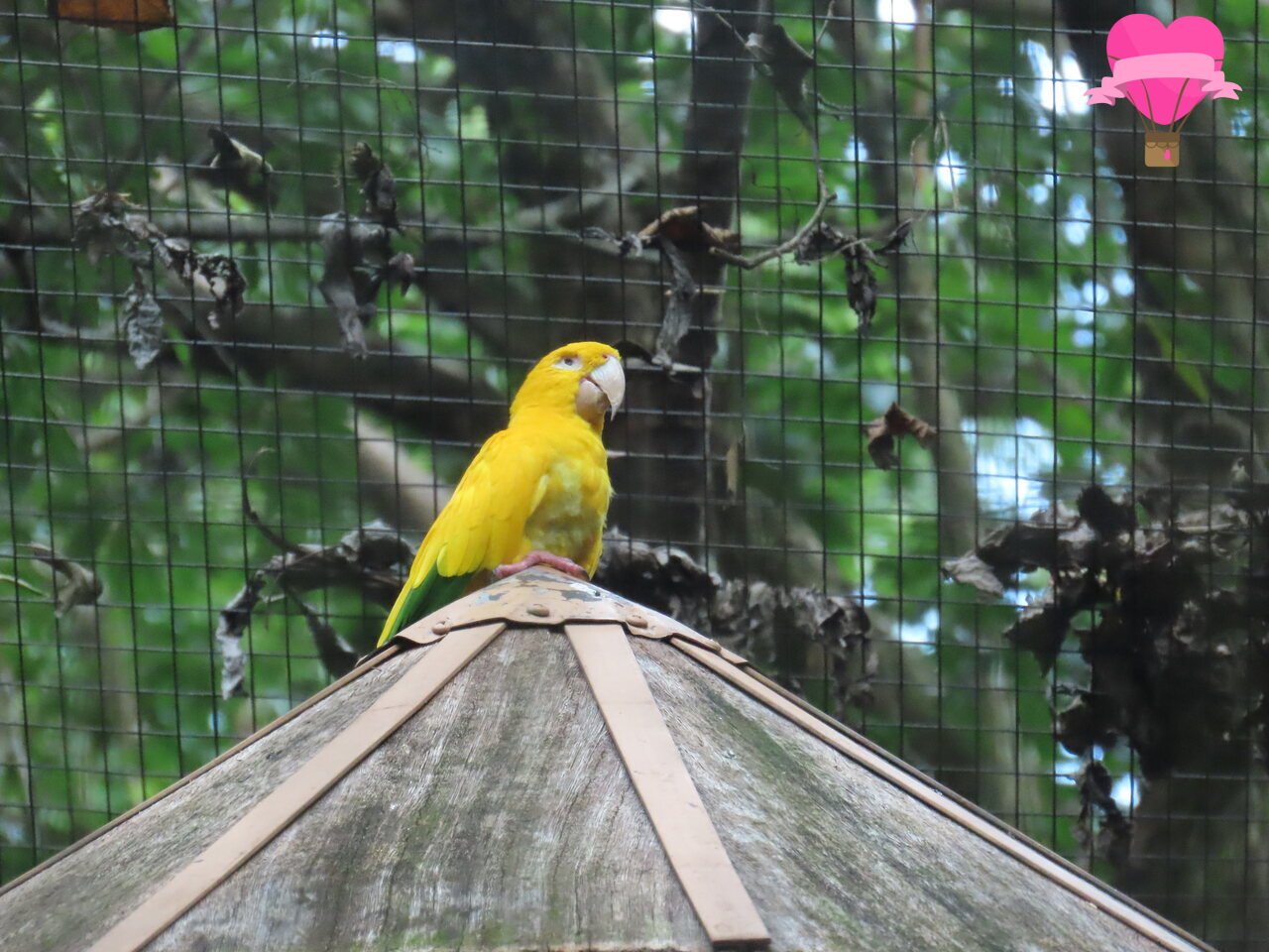Entre as aves mais raras e fascinantes do parque está a Guaruba ou também conhecida como Ararajuba. Com sua plumagem inteiramente amarela e olhos expressivos cercados por um anel branco, ela se destaca entre tantas outras aves coloridas.