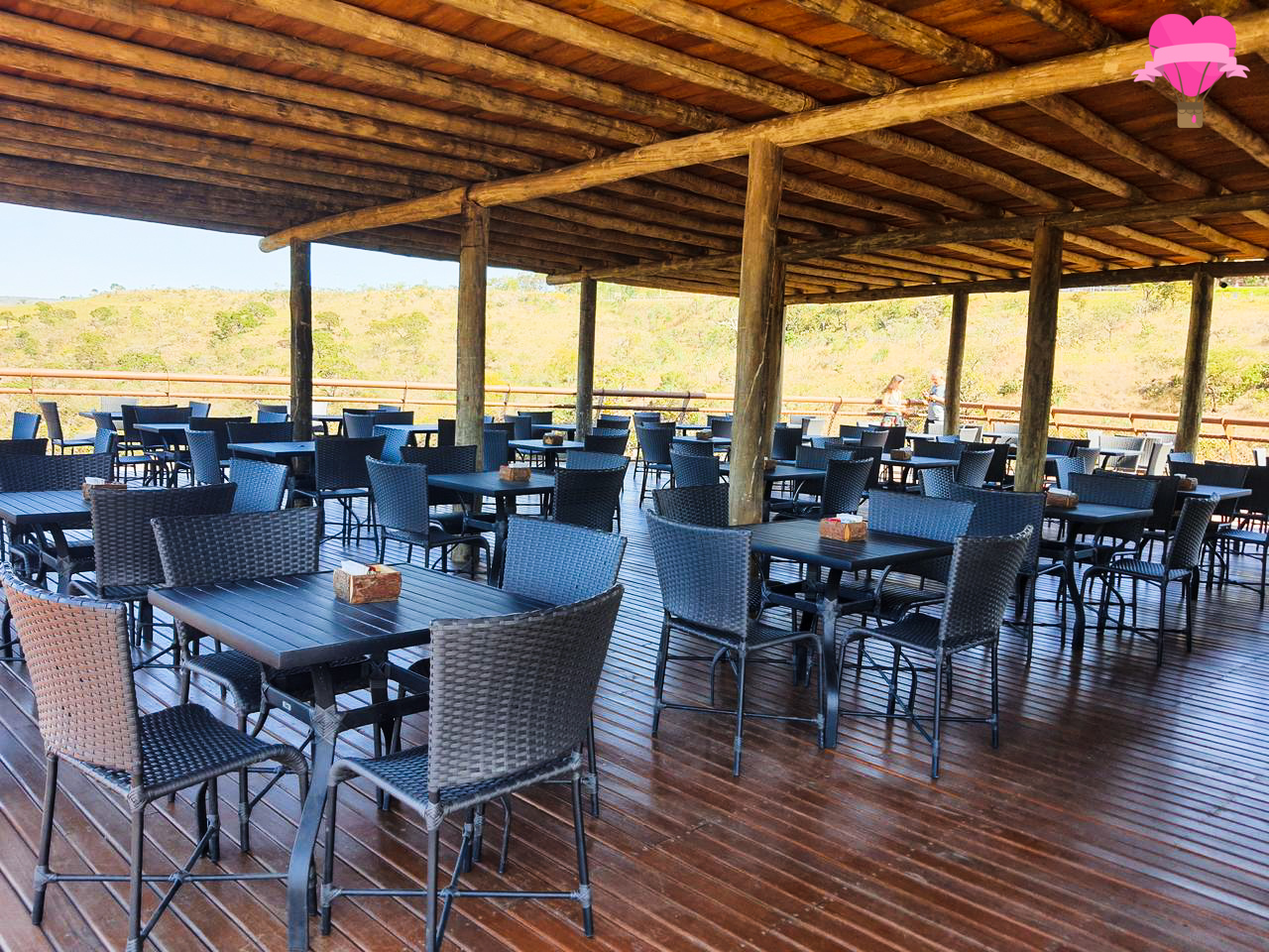 Logo após a ponte tem uma lanchonete que fica em um deck suspenso, também com uma vista privilegiada.