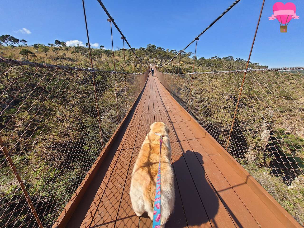Um dos pontos mais legais dentro do parque e que mais gostamos foi a ponte pênsil, ela liga os mirantes até as piscinas naturais e uma lanchonete.