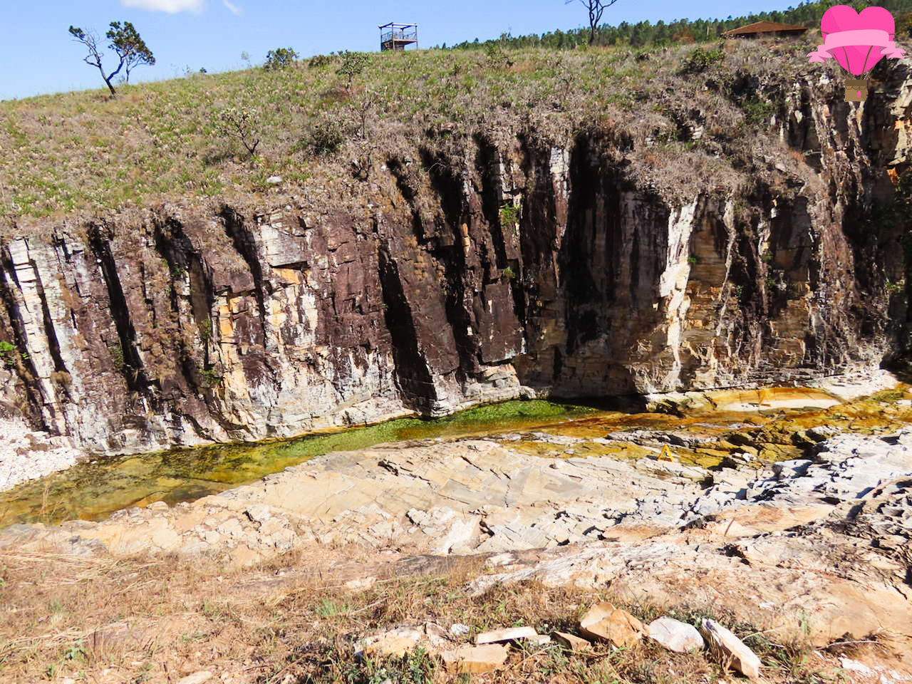 Próximo da lanchonete tem outra trilha que nos leva até os poços d’água que tem cor verde-esmeralda, a água se acumula em várias partes das pedras e formam piscinas naturais perfeitas para o banho, inclusive o pet pode nadar.