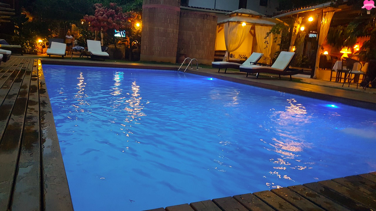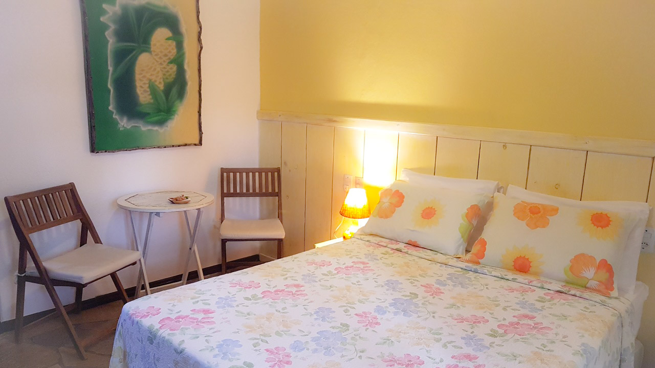 A pousada dispõe de 24 apartamentos nas categorias standard e luxo, sendo o primeiro no térreo e o segundo no piso superior. Ficamos hospedados no apartamento standard, equipado com ar condicionado, TV, frigobar, cofre, mesa para refeição, cama confortável, enxovais macios, arara para roupas, varal, secador, espelho de aumento, amenidades de banho, ducha quentinha, Wi-Fi que funcionou muito bem, vista para o jardim e a piscina.