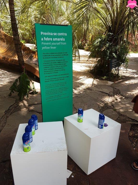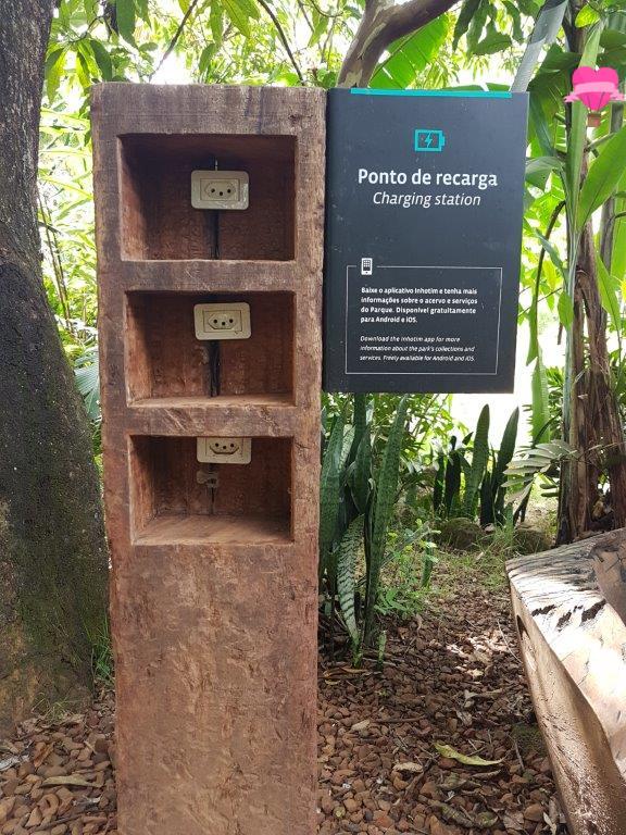 Há vários pontos de recarga distribuídos pelo parque. Na recepção tem repelentes contra insetos.