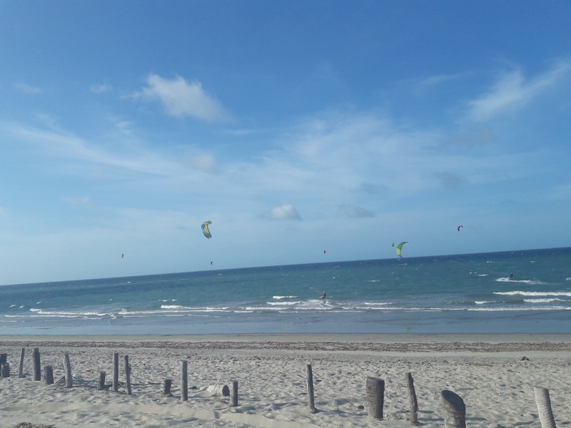Na volta, o passeio inclui três paradas pelo caminho. Primeiro na Praia do Preá, é bonita e o mar fica cheio de gente fazendo kitesurf, mas nem se compara em beleza à praia principal de Jeri.
