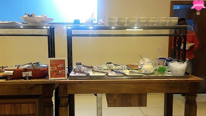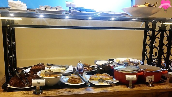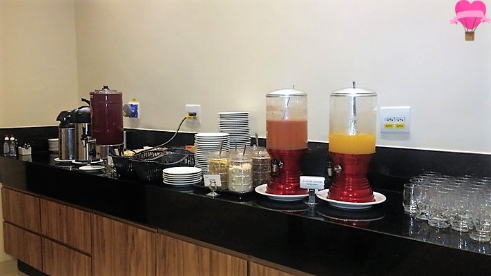 O café da manhã é bem completo, com variedades em pães, frutas, bolos, biscoitos e sucos. O restaurante é agradável e toda estrutura de primeira qualidade.