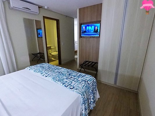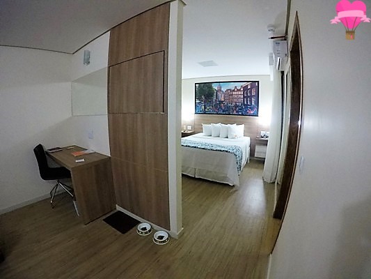 São 85 apartamentos, divididos nas categorias, flats e executivas. Fiquei no flat que possui minicozinha, antessala com mesa para trabalho, TV com canal a cabo, ar-condicionado, espelho, armário, cofre, WI-FI com ótimo sinal, cama, travesseiro e enxoval muito confortável. Banheiro grande com ducha gostosa e quentinha, tudo muito novinho. O hotel aceita nosso peludo 4 patas (todos os portes) com muito carinho e disponibilizam potinhos para colocarmos água e comida para eles.
